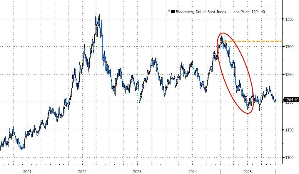 美元经历了艰难的一年,贸易加权美元指数下跌7%。在法币信用动摇的背景下,资金并未如预期般大规模流向比特币,而是疯狂涌入贵金属。
