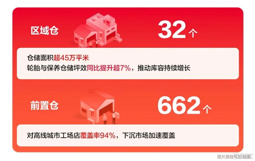 目前,途虎拥有32个区域仓、以及662 个前置仓,冷门配件可实现"几小时内送达",单店无需囤积大量库存,资金周转率大幅提升。