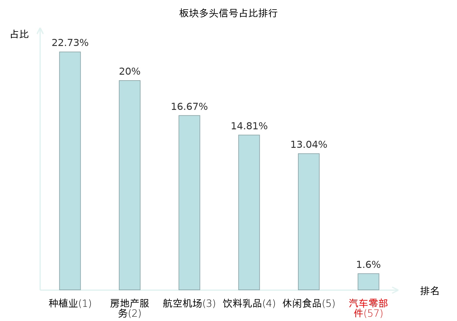 全市场所有行业板块中主力多头信号占比排名中,种植业板块位居第一。厨卫电器板块名次提升最快,较昨日上升109位。