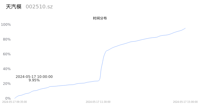 002510天汽模2024年05月17日成交35.19万手,成交金额1.43亿元,相较昨日放量18.68万手,换手率3.78%,成交清淡。