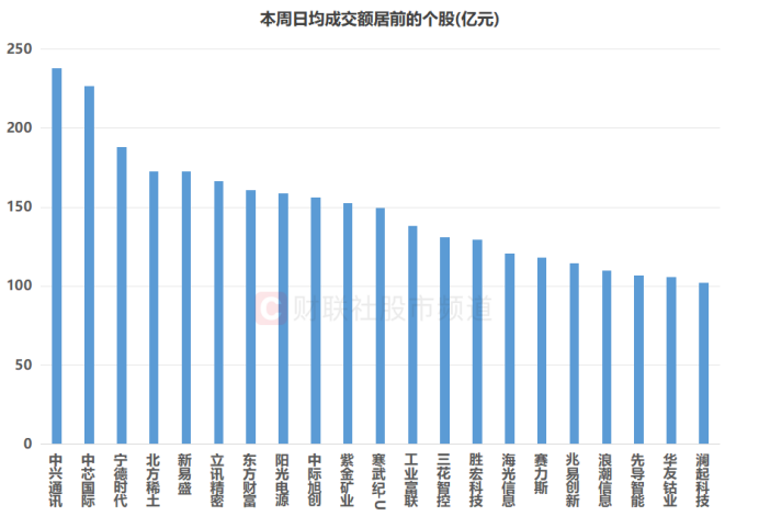 注:本周日均成交额居前的个股(截至10月10日数据)