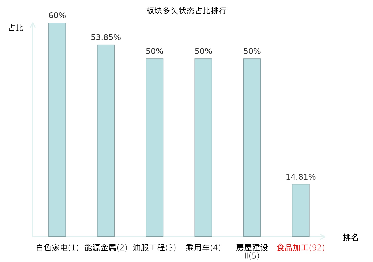 从主力宝信号数据分析,金字火腿所属的食品加工板块中共4只股票处于主力多头状态,主力多头状态占比在全行业中排名第92位,较昨日下降10位。较高的排名表明主力对于该板块整体看多意愿较强,此次排名下降可能反映了主力对该板块态度的微调。全市场所有行业板块中主力多头状态占比排名中,白色家电板块位居第一。油气开采Ⅱ板块名次提升最快,较昨日上升45位。这些变动揭示了不同行业间主力资金配置倾向的变化,为投资者评估板块相对吸引力提供了客观依据。