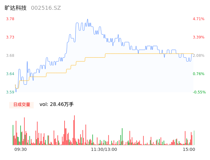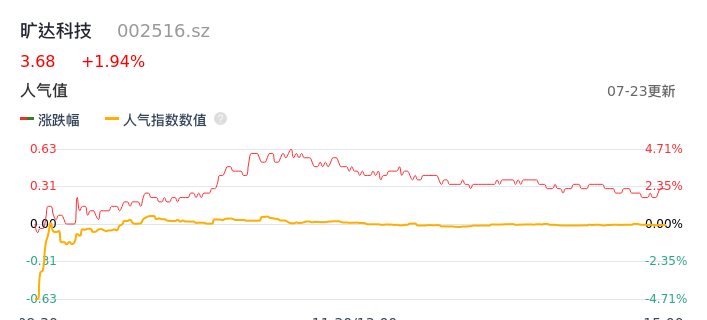 07月23日,旷达科技收报3.68,股价涨幅1.94%,成交金额1.05亿,换手率1.96%。