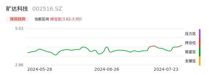 我们来看一下该股的九方特色指标强弱趋势的情况:旷达科技近日从观望区上穿到持仓区。股价短期站稳多头区域,上升动能仍较为充足,可积极关注。后续重点关注上方压力位:3.95元是否能突破上攻。