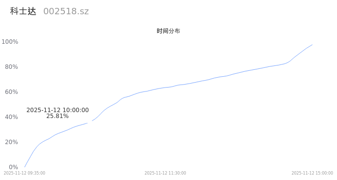 002518科士达2025年11月12日成交17.97万手,成交金额8.59亿,相较昨日缩量9265手,换手率3.18%,成交清淡。