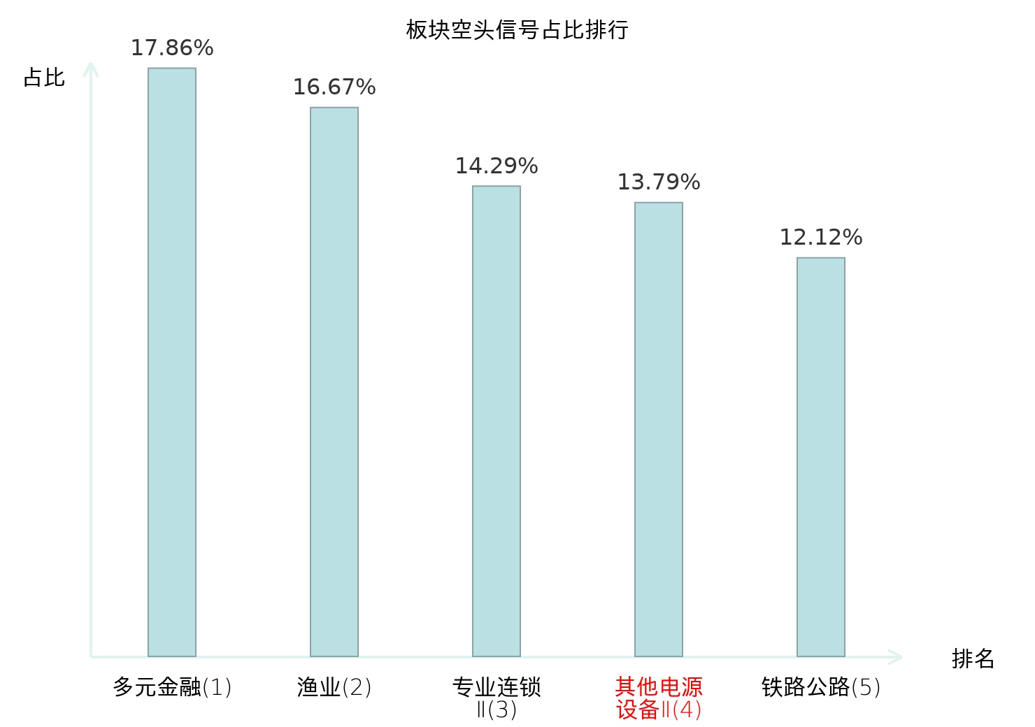 全市场所有行业板块中主力空头信号占比排名中,多元金融板块位居第一。多元金融板块名次提升最快,较昨日上升128位。