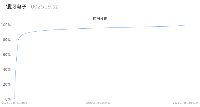 002519银河电子2026年01月15日成交79.56万手,成交金额8.25亿,相较昨日缩量373.61万手,换手率7.11%,成交清淡。