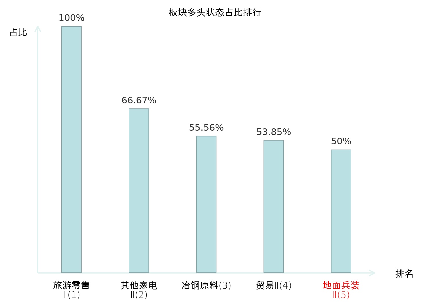全市场所有行业板块中主力多头状态占比排名中,旅游零售Ⅱ板块位居第一。房屋建设Ⅱ板块名次提升最快,较昨日上升58位。