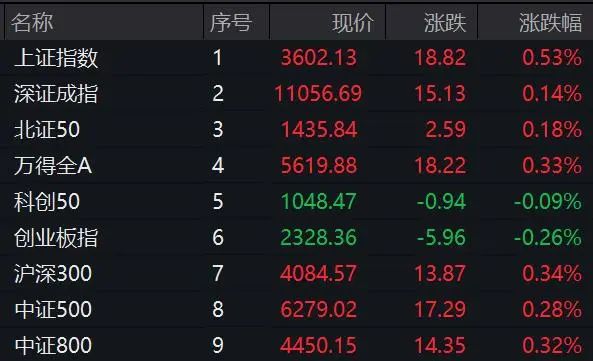 今日早盘,A股整体跳空高开,随后出现分化,上证指数、上证50、沪深300等高开高走,创业板指、科创50等则高开低走微幅飘绿,成交保持平稳。