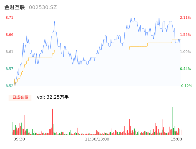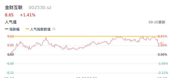 09月20日,金财互联收报8.65,股价涨幅1.41%,成交金额2.79亿元,换手率4.74%。