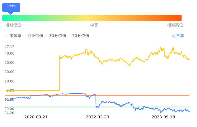金财互联当前市盈率PETTM为-23.19,在所属的IT服务中,市盈率PETTM排92名。前5名分别为诺力股份PETTM12.44、今天国际PETTM15.18、航天信息PETTM16.73、神州数码PETTM16.98、国网信通PETTM22.82。从PETTM估值走势数据来看,金财互联当前市盈率PETTM为-23.19,超过近3年0.69%的历史数据。
