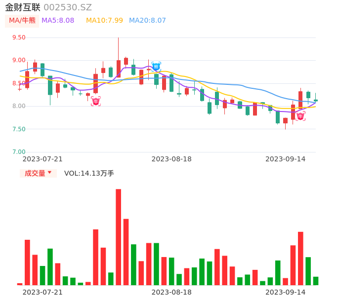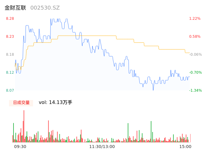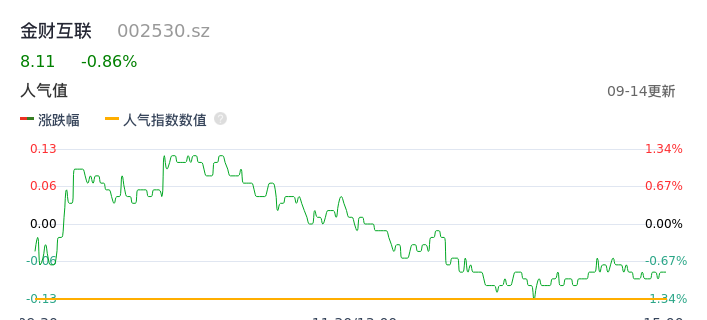 09月14日,金财互联收报8.11,股价涨幅-0.86%,成交金额1.16亿元,换手率2.08%。