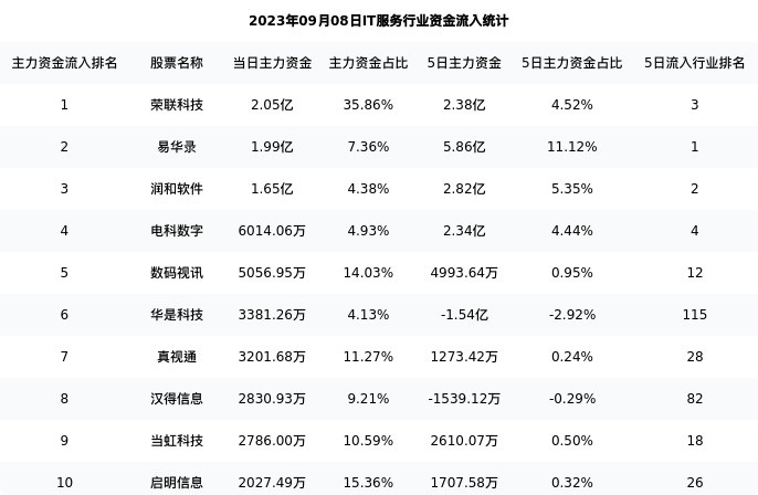 从主力资金流向来看,IT服务行业今日主力资金流入118.24亿元,在所有申万二级行业中排名:98/131。