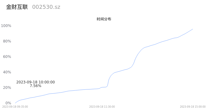 002530金财互联2023年09月18日成交31.34万手,成交金额2.63亿元,相较昨日放量16.90万手,换手率4.61%,成交清淡。