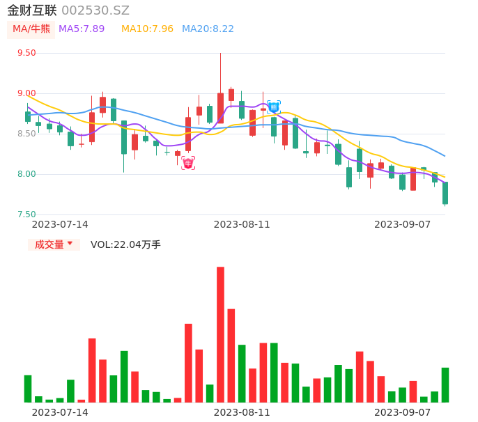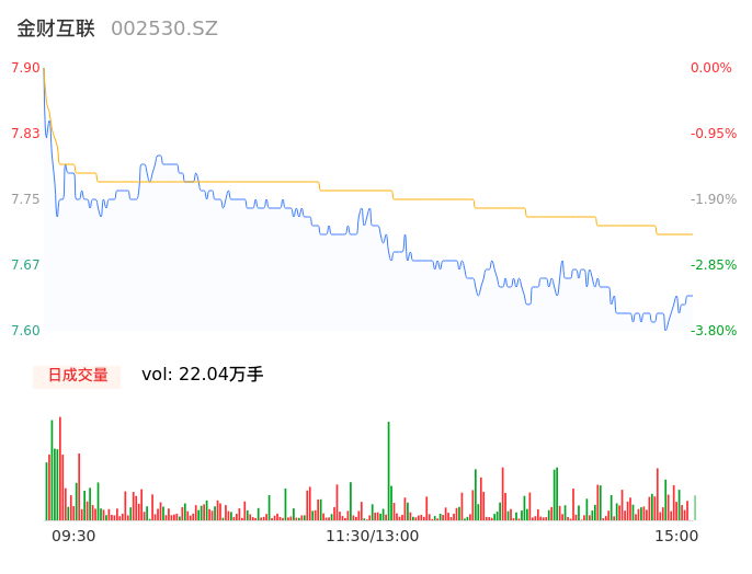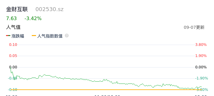 09月07日,金财互联收报7.63,股价涨幅-3.42%,成交金额1.70亿元,换手率3.24%。