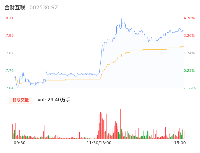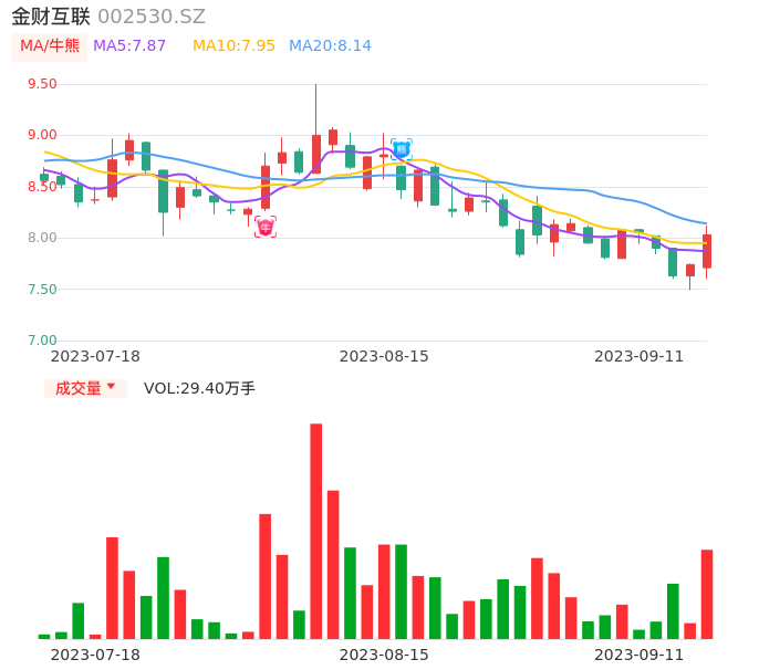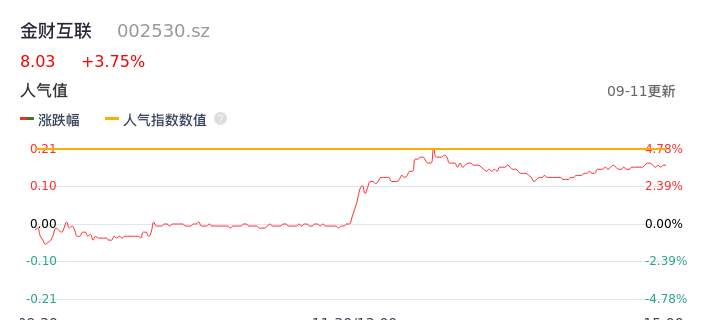 09月11日,金财互联收报8.03,股价涨幅3.75%,成交金额2.33亿元,换手率4.32%。