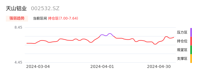 值得注意的是:2024年04月天风证券的刘奕町分析师,首次发布关于天山铝业的研究报告,标题为:天山铝业(002532):产业链一体化优势明显 归母净利润环比提升。