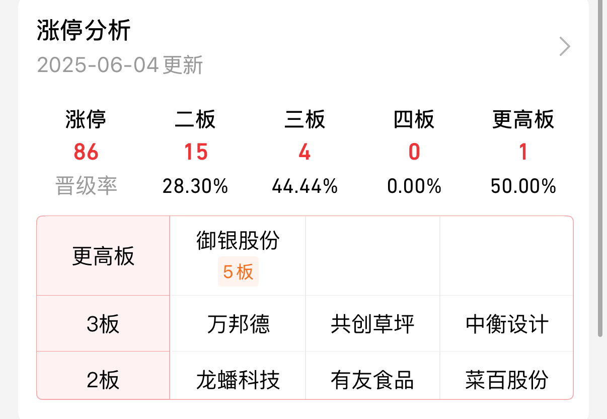今天涨停家数回升到71家,难能可贵,封板率也提高不少,到了74%。连板率是最强的,连续多日来到了30%。说明热点持续性强,有搞头。