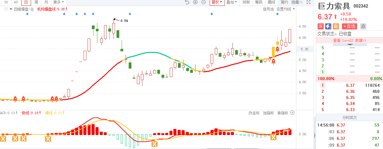 3)巨力索具-四维操盘-近期出现火箭信号且底部量柱由绿转红