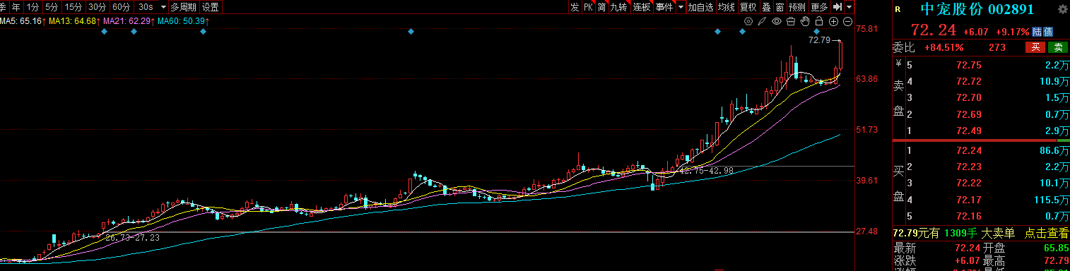 而且这两个票都是不涨停,涨不停的走势。不容易被洗下车,稳稳的沿着均线往上走。
