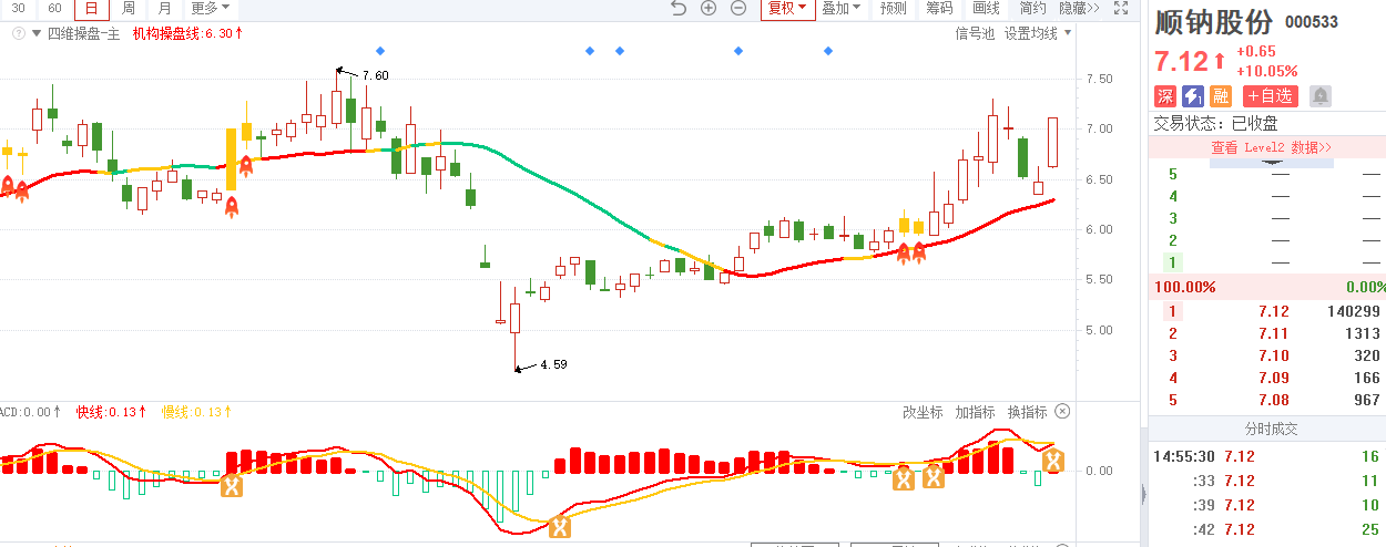 2)顺钠股份-四维操盘-近期出现火箭信号且底部量柱由绿转红