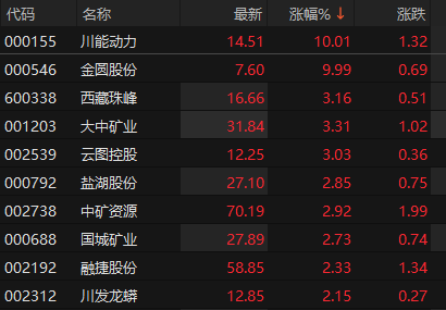 上证报中国证券网讯 11月19日早盘,锂矿概念股走强,截至9时35分,金圆股份3连板,川能动力涨停,西藏珠峰、大中矿业、云图控股涨逾3%,盐湖股份等跟涨。