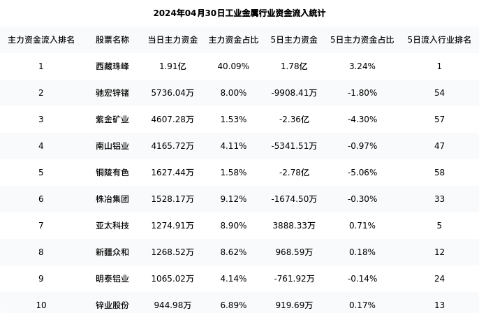 从主力资金流向来看,工业金属行业今日主力资金流入86.02亿元,在所有申万二级行业中排名:63/131。