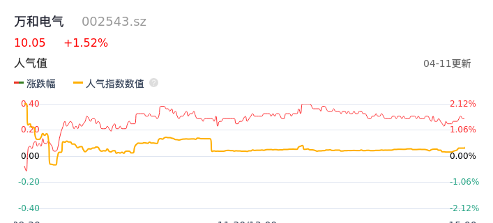 04月11日,万和电气收报10.05,股价涨幅1.52%,成交金额4372.09万元,换手率0.66%。