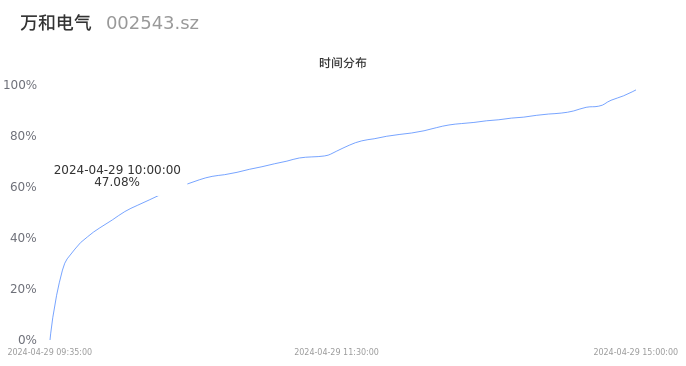 002543万和电气2024年04月29日成交14.30万手,成交金额1.57亿元,相较昨日放量3.74万手,换手率2.16%,成交清淡。