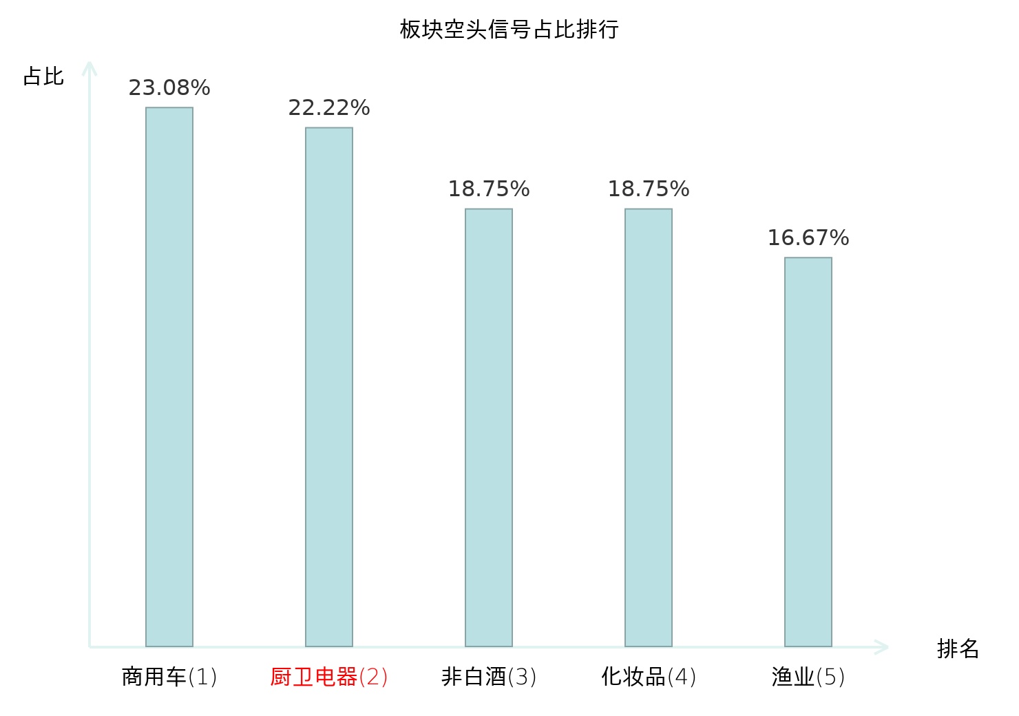 全市场所有行业板块中主力空头信号占比排名中,商用车板块位居第一。环保设备Ⅱ板块名次提升最快,较昨日上升96位。