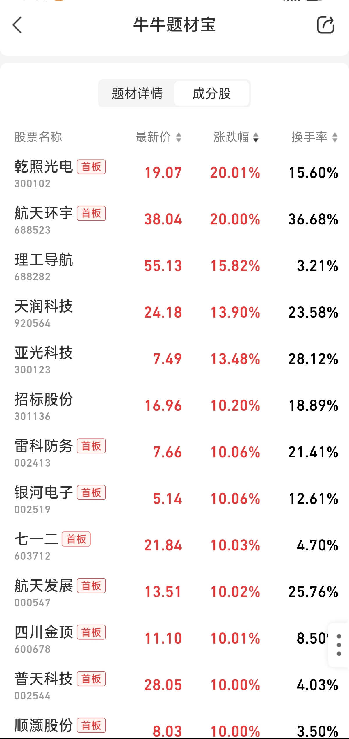叠加近期海外利好共振,商业航天再度走强,乾照光电、银河电子、雷科防务、航天发展、通宇通讯等个股涨停。