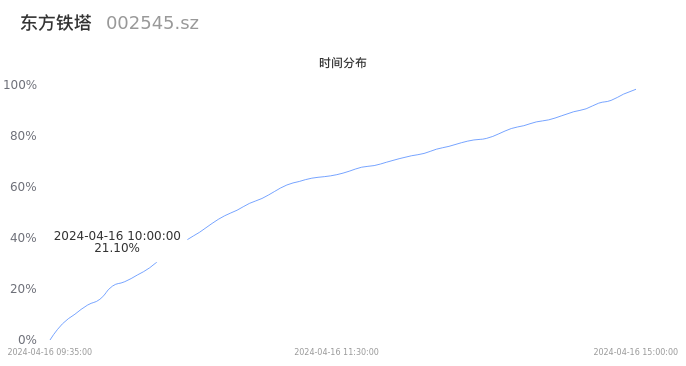002545东方铁塔2024年04月16日成交13.86万手,成交金额1.03亿元,相较昨日放量2.00万手,换手率1.23%,成交清淡。