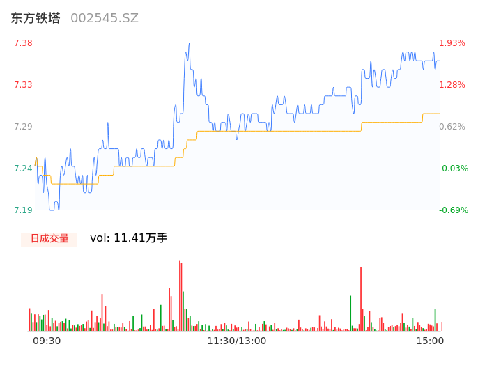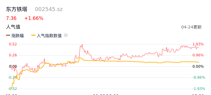 04月24日,东方铁塔收报7.36,股价涨幅1.66%,成交金额8323.09万元,换手率1.01%。