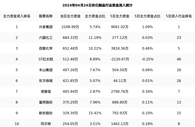 从主力资金流向来看,农化制品行业今日主力资金流入20.98亿元,在所有申万二级行业中排名:94/131。