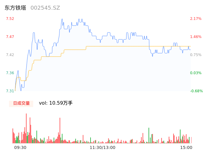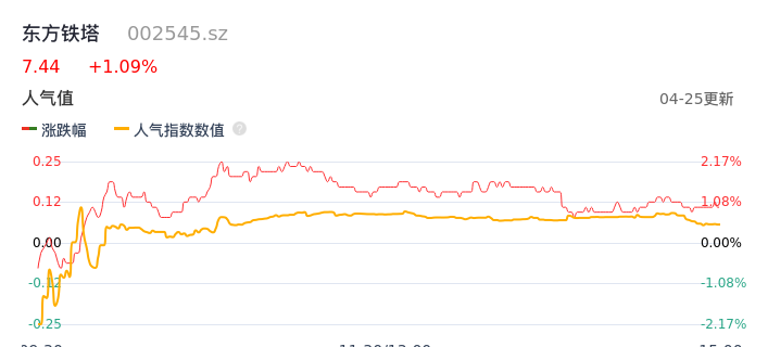 04月25日,东方铁塔收报7.44,股价涨幅1.09%,成交金额7875.20万元,换手率0.94%。