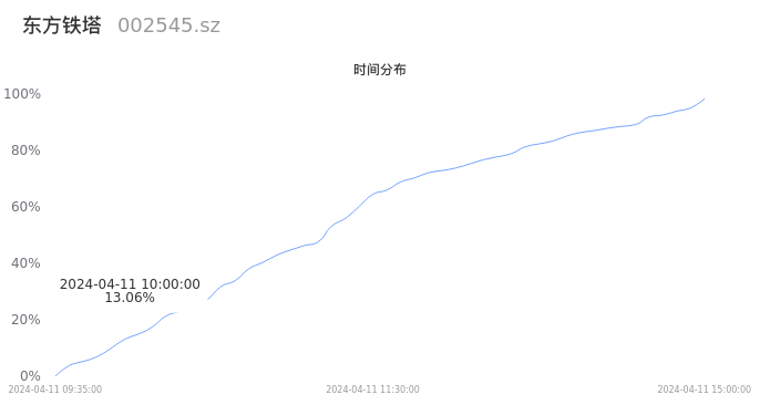 002545东方铁塔2024年04月11日成交12.81万手,成交金额9718.12万元,相较昨日放量2.34万手,换手率1.13%,成交清淡。