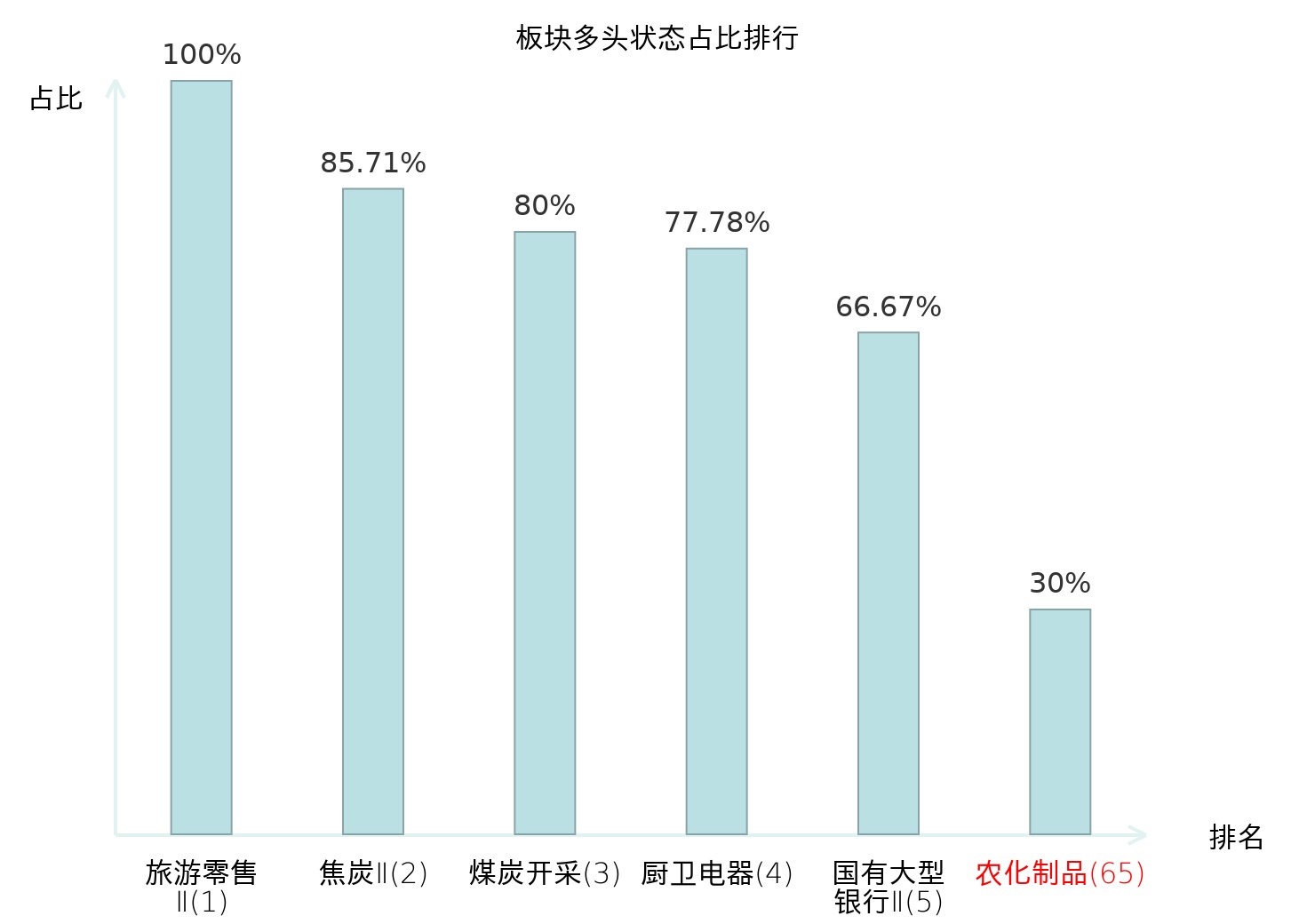 全市场所有行业板块中主力多头状态占比排名中,旅游零售Ⅱ板块位居第一。渔业板块名次提升最快,较昨日上升66位。