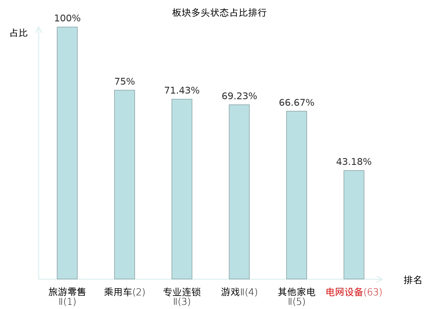 从主力宝信号数据分析,新联电子所属的电网设备板块中共有57只股票处于主力多头状态,主力多头状态占比在全行业中排名第63位,较昨日上升4位。排名的提升表明主力对电网设备行业的整体看多意愿有所增强,这为投资者提供了该板块未来表现的积极信号。全市场所有行业板块中,旅游零售Ⅱ板块的主力多头状态占比位居第一。保险Ⅱ板块名次提升最快,较昨日上升82位。这些变动反映了主力资金在不同行业间的偏好调整,为投资者提供了市场动态的重要参考。