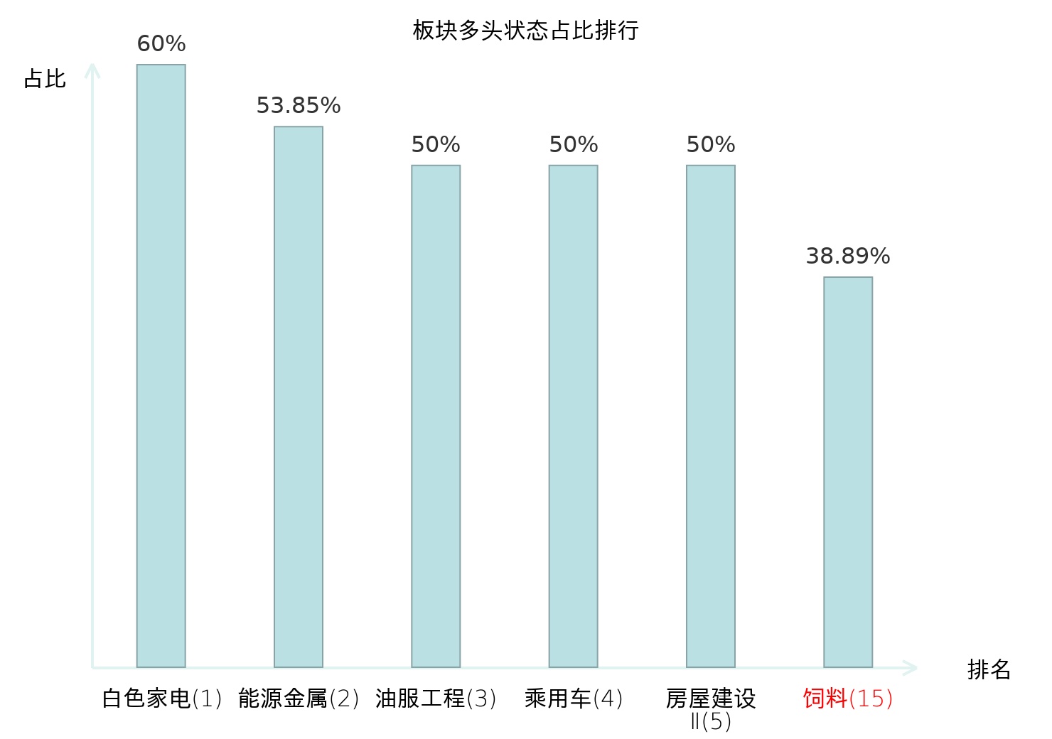 全市场所有行业板块中主力多头状态占比排名中,白色家电板块位居第一。油气开采Ⅱ板块名次提升最快,较昨日上升45位。