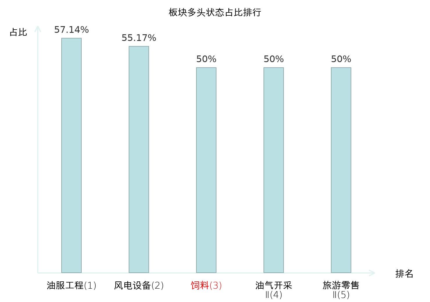 全市场所有行业板块中主力多头状态占比排名中,油服工程板块位居第一。非金属材料Ⅱ板块名次提升最快,较昨日上升67位。
