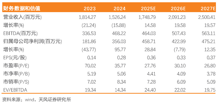 此前对公司2025-2026年的收入预测为22.02/25.07亿元,对公司2025-2026年的归母净利润预测为3.56/4.29亿元。考虑到公司2025H1收入增长稳健与利润增长较快等因素,更新对公司2025-2027年营业收入预测为17.49/20.91/25.00亿元,更新对公司2025-2027年归母净利润预测为4.59/4.23/4.75亿元。维持“增持”评级。