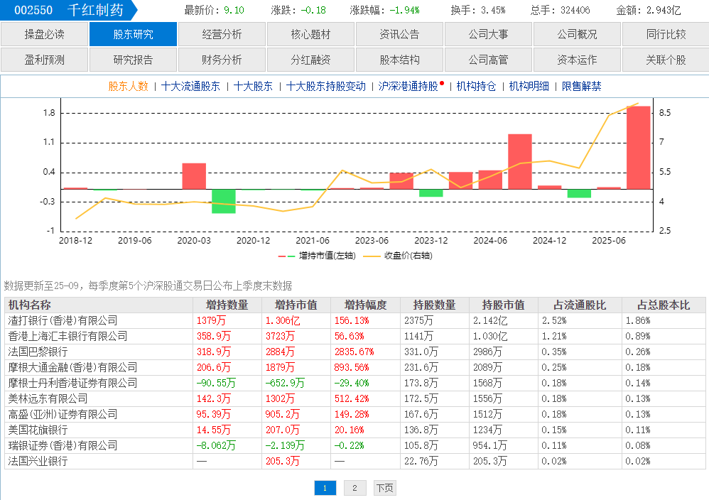 千红制药是创新药概念股,近半年随创新药和医保集采的政策驱动,股价顺势上升(优于大市),再5月至7月份经过一波翻倍的主升浪后,又回调了近三个月,10月份止跌企稳,且阶段性底部被抬高!当下流通市值不到100亿,且有大量外资和公募基金的身影,外资近期密集加仓,股价有望开启第二轮主升浪。点击此处立即解锁“启动点“!