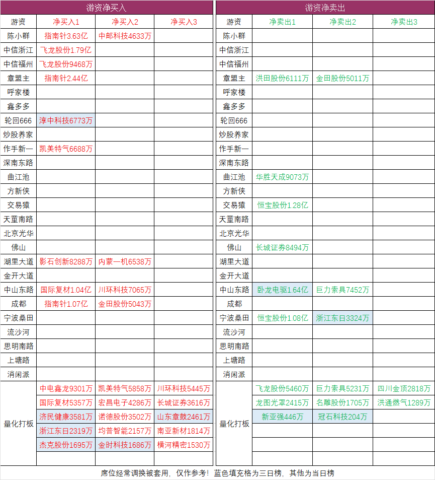 点评:半导体是周末热度消息最高的板块,首先是华虹公司的停牌,其次就是华为麒麟芯片“重见天日”,今天重点看下半导体方向有无表现,核心大中军中芯国际能否表态吧,另外叠加重组的衢州发展上周五已经放量了,今天正常会给换手机会的,上周五盘前说的凯美特气反包预期,逻辑也是兑现了,作为身位龙,正常应该是加速预期的,其他的万通发展北京席位买入差不多10亿,上周五高开低走量化兑现,今天正常是要反包的,其他的华为方向的老演员:深圳华强、世纪鼎利、力源信息等等