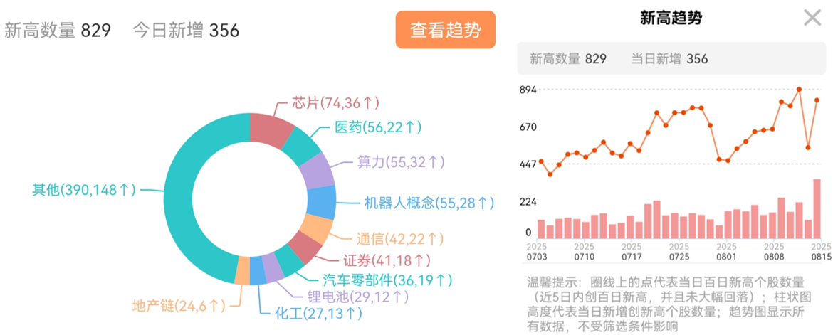 从百日新高,判断板块轮动节奏还是比较准的,昨日的百日新高数据继续新高回暖,目前是在芯片(自主可控)>医药>算力>机器人