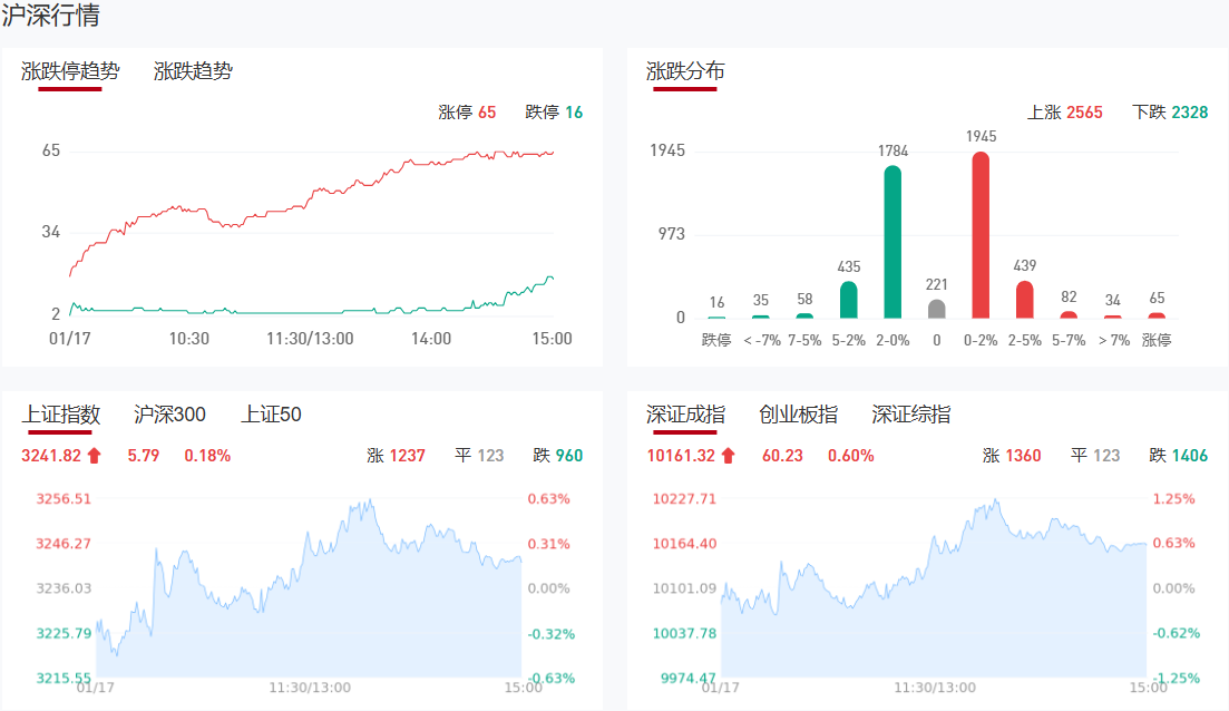 A股三大指数今日集体上涨,截至收盘,沪指涨0.18%,深成指涨0.60%,创业板指涨0.78%,北证50指数跌0.39%。全市场成交额11511亿元,较上日缩量1419亿元。截至收盘,全市场超2600只个股上涨。