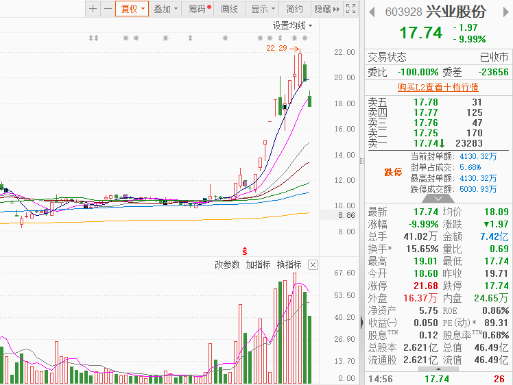 市场情绪:市场热点较为杂乱,个股跌多涨少,全市场超4100只个股下跌。今日共39股涨停,连板股总数10只,21股封板未遂,封板率为65%(不含ST股、退市股)。焦点股方面,诚邦股份午后炸板跳水翻绿,市场连板高度再次降至4连板,创新药概念股塞力医疗一字涨停晋级4连板,钢铁股柳钢股份缩量涨停晋级4连板。此外,雪迪龙、好上好、兴业股份等人气股跌停。
