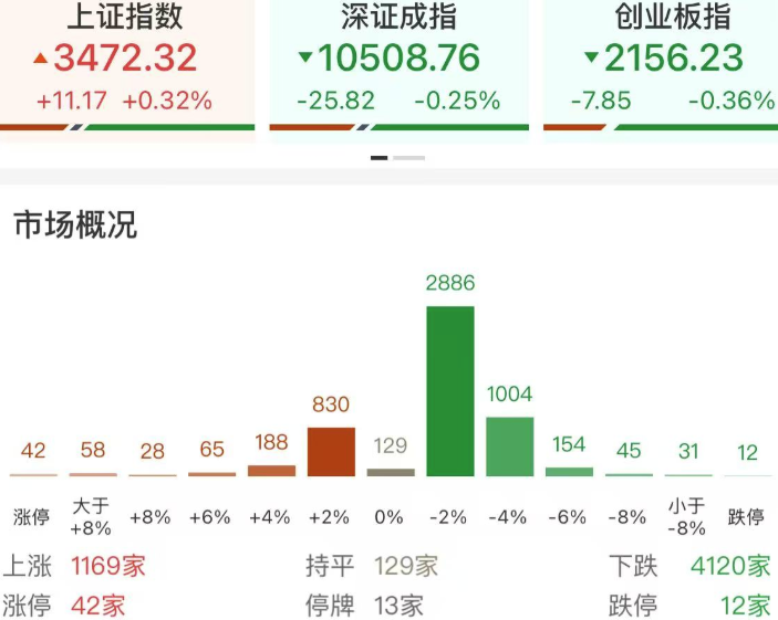 市场全天冲高回落,三大指数涨跌不一,沪指一度涨超1%逼近3500点。沪深两市全天成交额1.43万亿,较上个交易日放量1188亿。盘面上,银行股再度走强,浦发银行等多股再创历史新高。稳定币概念股震荡反弹,京北方等涨停。电力股持续活跃,华银电力等涨停。下跌方面,固态电池概念股展开调整,信宇人跌超10%。截至收盘,沪指涨0.32%,深成指跌0.25%,创业板指跌0.36%。