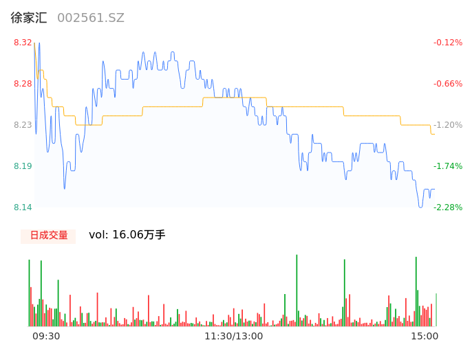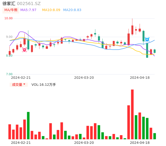 04月18日,徐家汇收报8.15,股价涨幅-2.16%,成交金额1.33亿元,换手率3.89%。