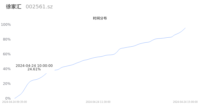 002561徐家汇2024年04月24日成交9.58万手,成交金额7658.59万元,相较昨日放量1.22万手,换手率2.31%,成交清淡。