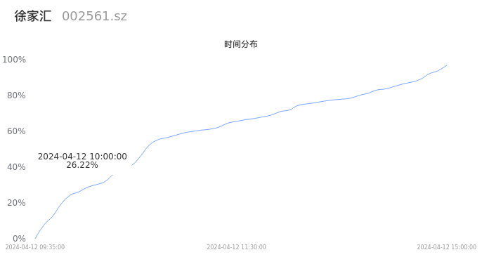 002561徐家汇2024年04月12日成交36.69万手,成交金额3.48亿元,相较昨日放量2.68万手,换手率8.85%,成交清淡。